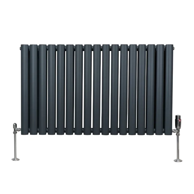 Ovalni stebrični radiator in ventili - 600 mm x 1020 mm - antracitno siva