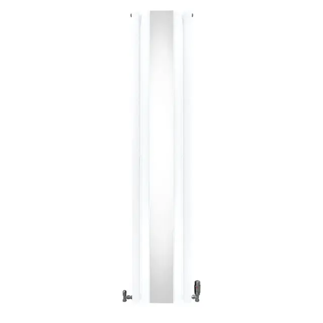 Vnesite toplino v svoj dom z našim vrhunskim vertikalnim radiatorjem z ovalno ploščo v beli barvi z elegantnim osrednjim ogledalom in kompletom termostatskih kromiranih ventilov – popolna mešanica brezčasne elegance in sodobne učinkovitosti.