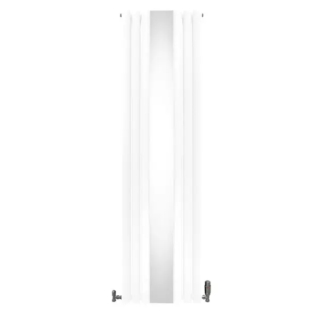 Vnesite toplino v svoj dom z našim vrhunskim vertikalnim radiatorjem z ovalno ploščo v beli barvi z elegantnim osrednjim ogledalom in kompletom termostatskih kromiranih ventilov – popolna mešanica brezčasne elegance in sodobne učinkovitosti.