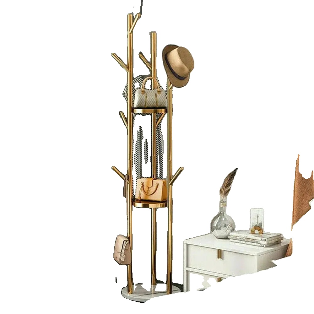 Ovise za plašče, prostostoječa zasnova, 3 shranjevalne police, zlata