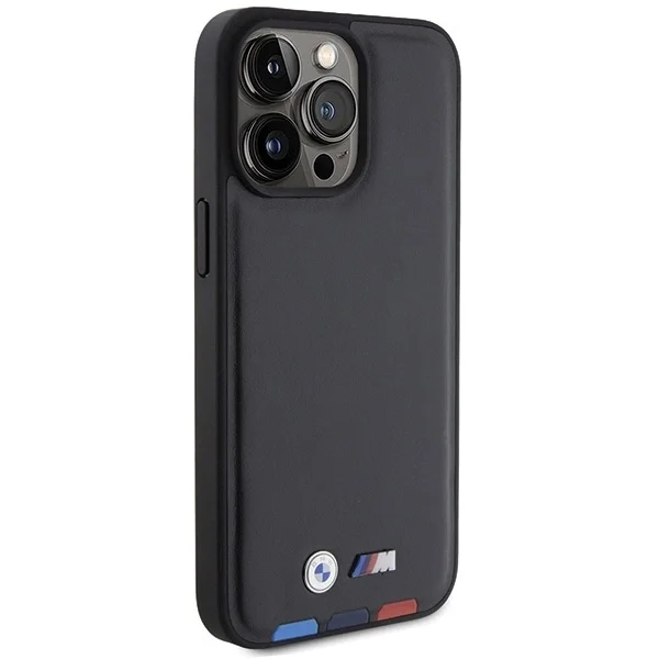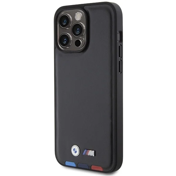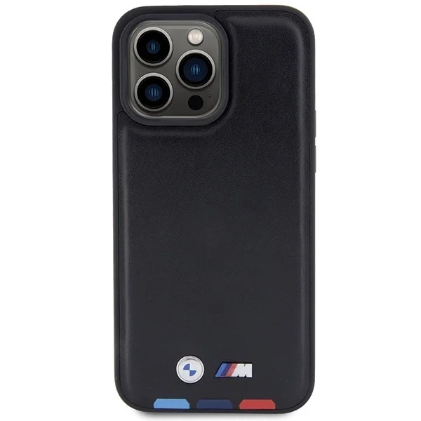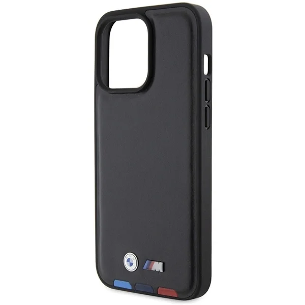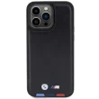 OVITEK BMW TRIKOLOR USNJENI STAMP ZA IPHONE 15 PRO MAX ČRN