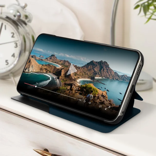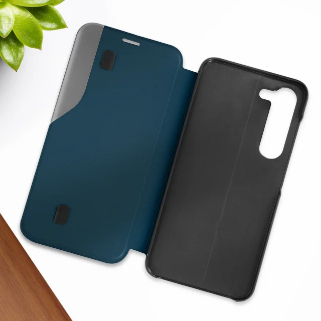 Ovitek Clear View za Samsung Galaxy S23, preklop okna in funkcija stojala - zelen