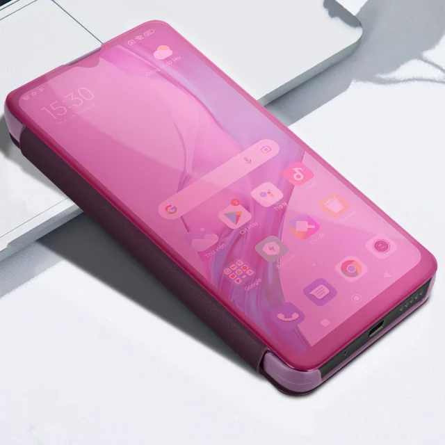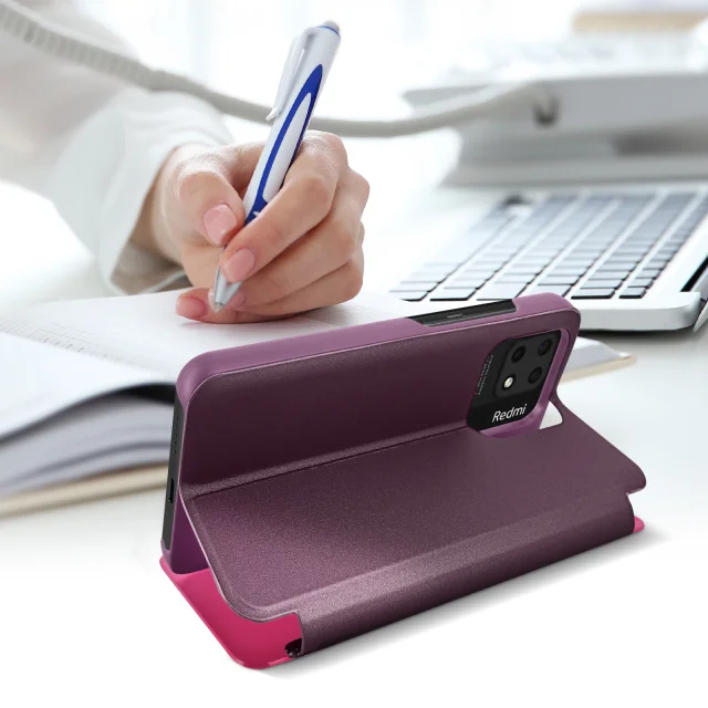 Ovitek Clear View za Xiaomi Redmi 10C z ultratankim preklopom z ogledalom, stojalo za video - vijolicen