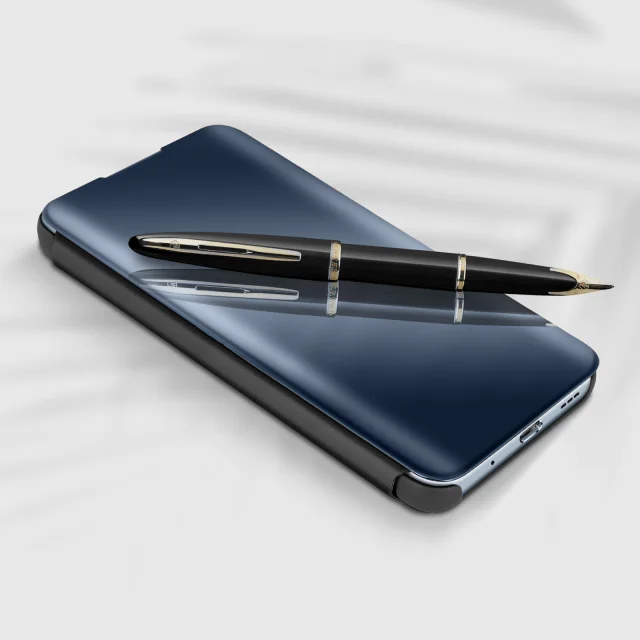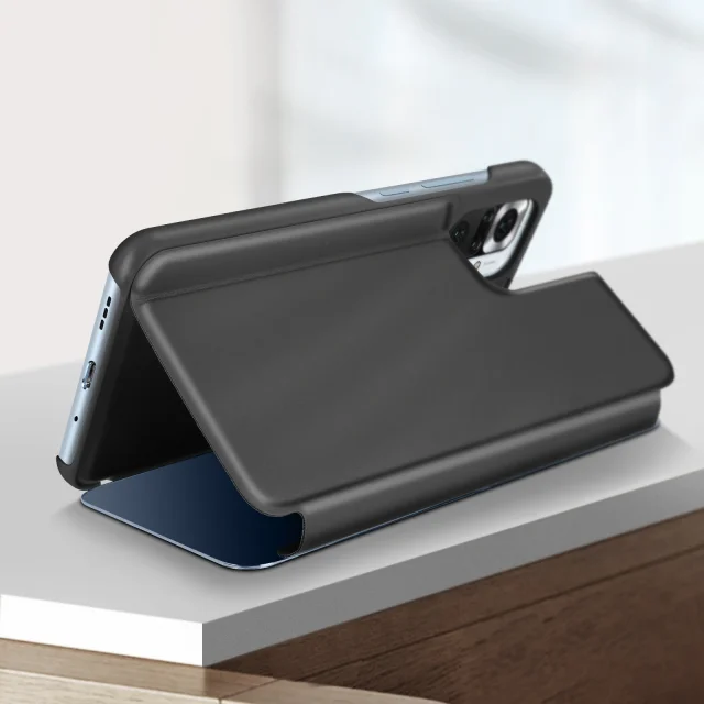 Ovitek Clear View za Xiaomi Redmi Note 10 Pro, ultra tanek preklop z ogledalom, funkcija stojala - crn