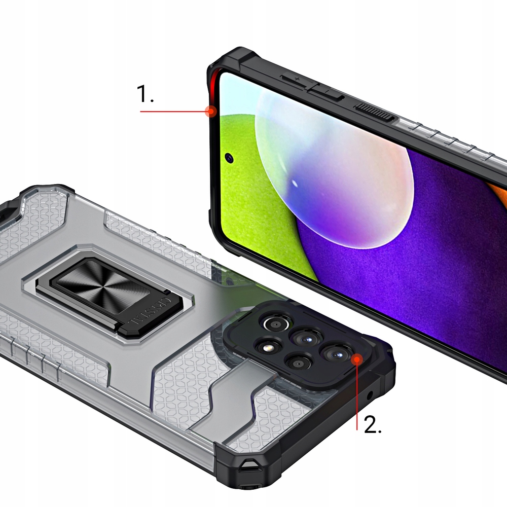 Crystal Ring ni le etui, je tudi moden dodatek, ki spremeni videz vašega telefona. Izdelan iz najkakovostnejših materialov, zagotavlja zaščito pred poškodbami brez žrtvovanja estetike. Njegova modra barva pritegne pozornost in hkrati daje vaši napravi subtilno eleganco. Zahvaljujoč inovativnemu sistemu ojačanih vogalov bo vaš Samsung Galaxy A72 zaščiten v vseh pogojih. Uživajte v popolni svobodi brez skrbi zaradi prask in padcev.