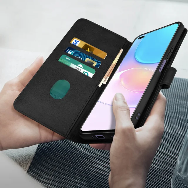 Ovitek, denarnica in stojalo za Honor 50 Lite in Huawei nova 8i, žep za kartico in racun - crn