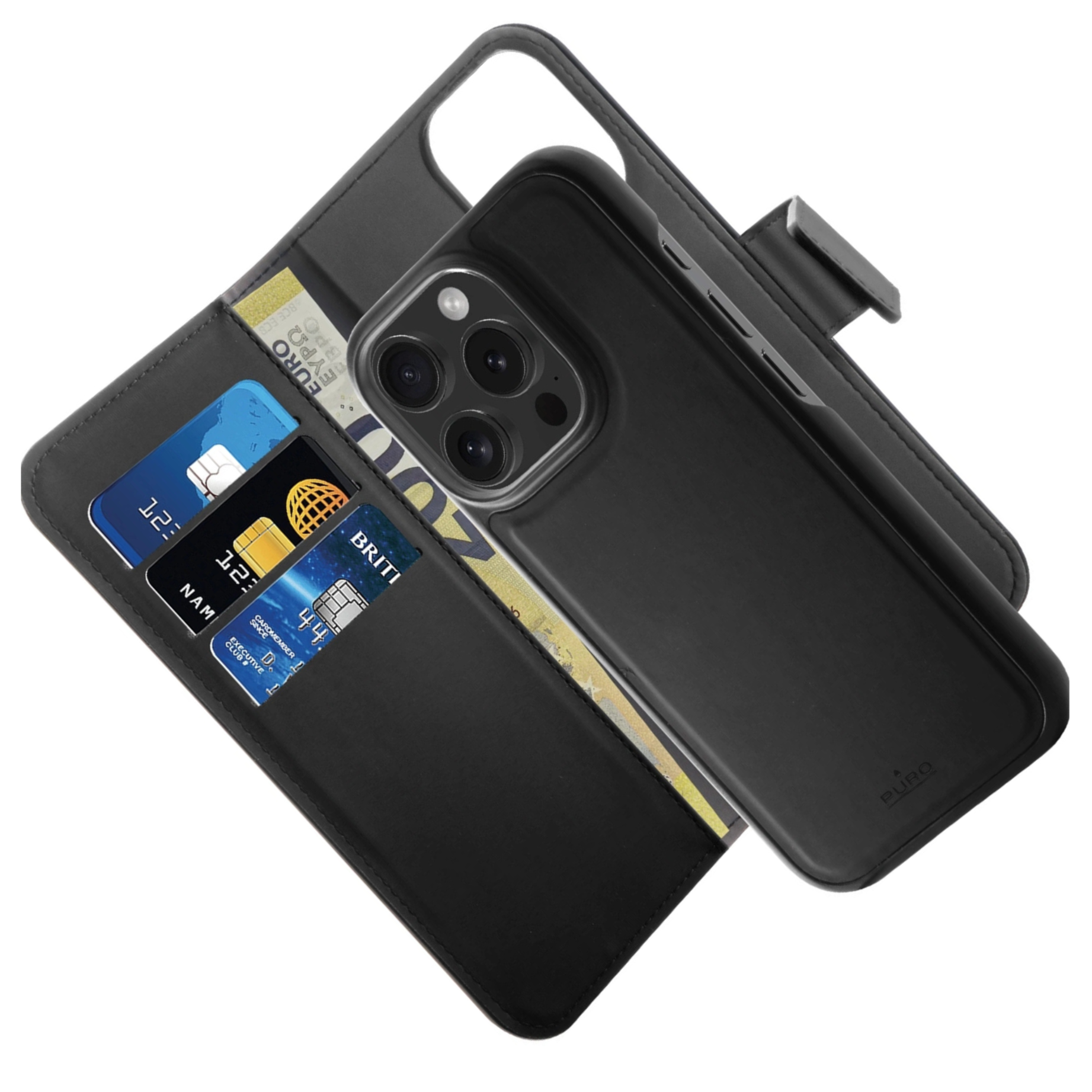 S snemljivo torbico Puro Wallet za MagSafe 2v1 bo vaše življenje enostavnejše in elegantnejše hkrati. Eko usnje v elegantni črni barvi, MagSafe tehnologija in možnost ločevanja denarnice so lastnosti, ki odlikujejo ta model. Zagotovite si udobje, eleganco in funkcionalnost v enem izdelku. Ni vam treba več izbirati – ta ovitek vam bo zagotovil vse, kar potrebujete, in ohranil najvišji standard zaščite za vaš iPhone.
