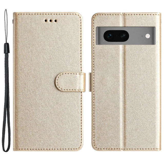 Ovitek denarnica s svileno teksturo za Google Pixel 7 5G, PU usnjeno stojalo, ovitek za telefon, odporen na udarce, s trakom