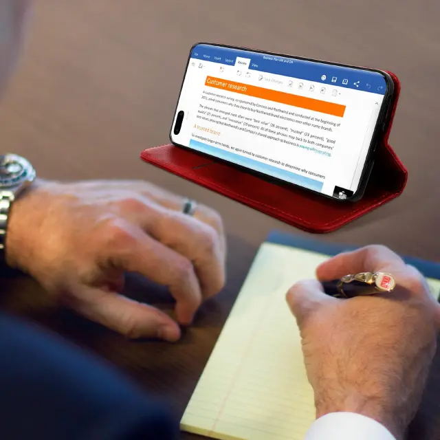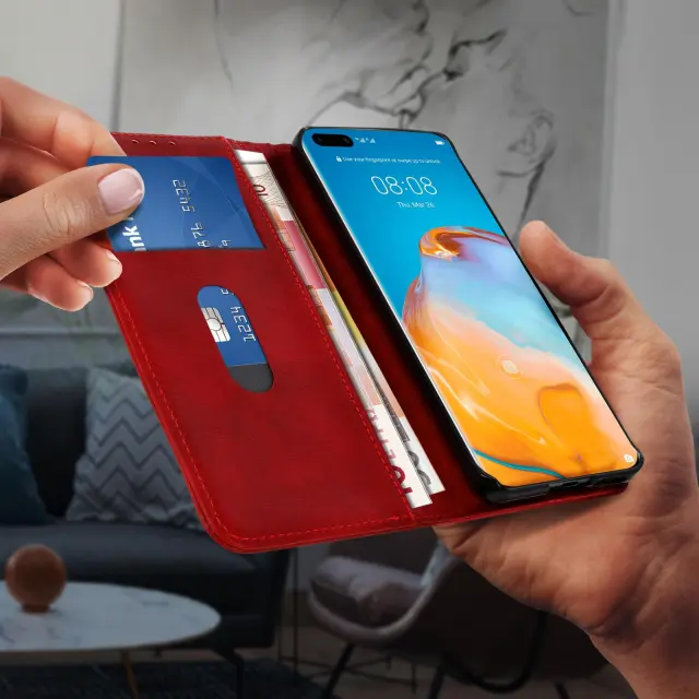 Integrirana zaščitna torbica posebej zasnovana za Huawei P40 Pro. Učinkovito ščiti vaš pametni telefon pred vsakodnevnimi udarci in praskami. Eleganten dizajn z oblazinjenjem iz ekološkega usnja in šivanimi zaključki. Po meri oblikovana zaščitna prevleka iz silikonskega gela.