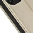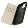 Ovitek zlate barve za iPhone 15 Pro Max. Ima predelke za kartice v podlogi magnetne lopute in odporno in prožno silikonsko gelsko lupino. Služi tudi kot vodoravna podpora za ogled vaših videoposnetkov.