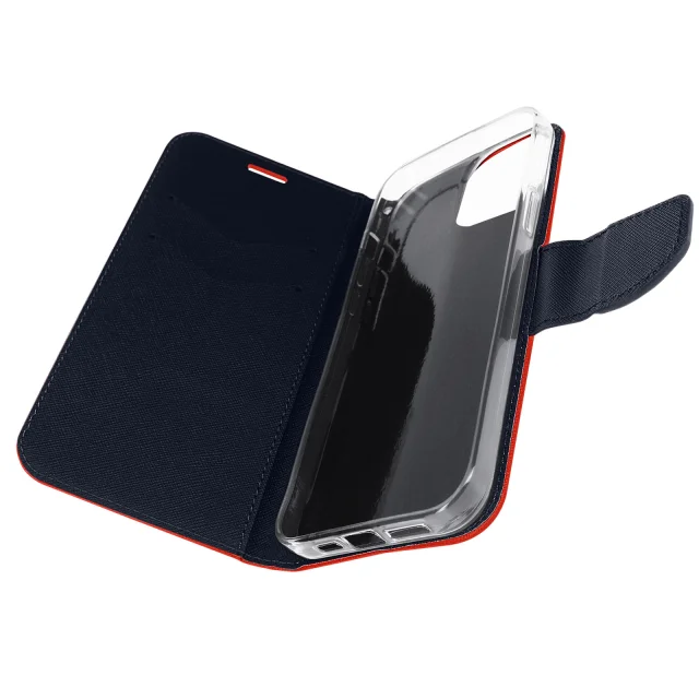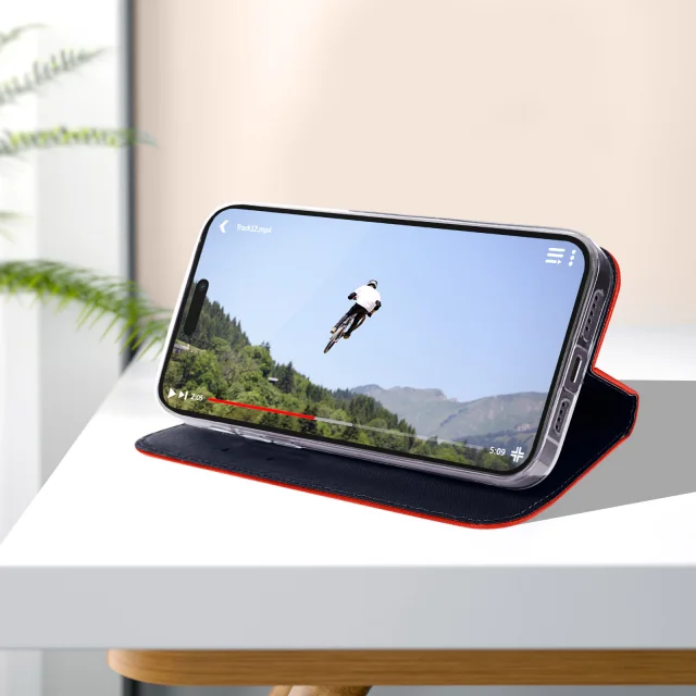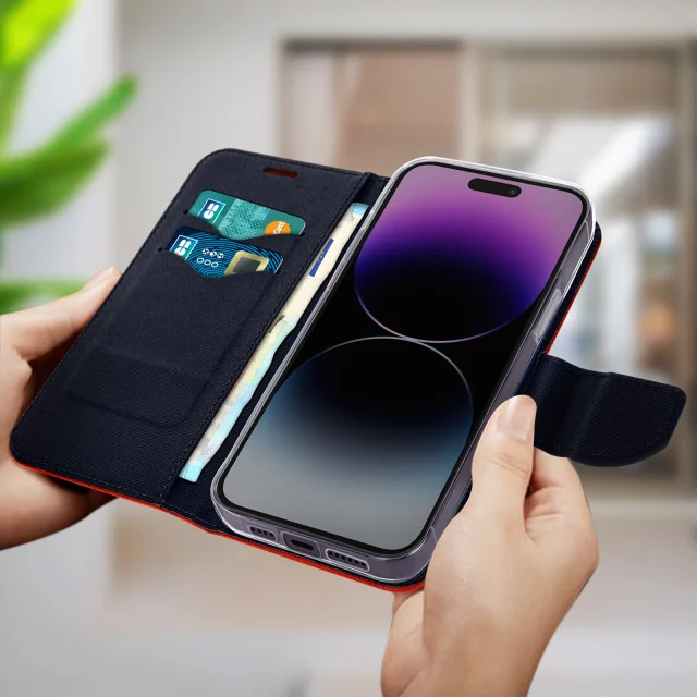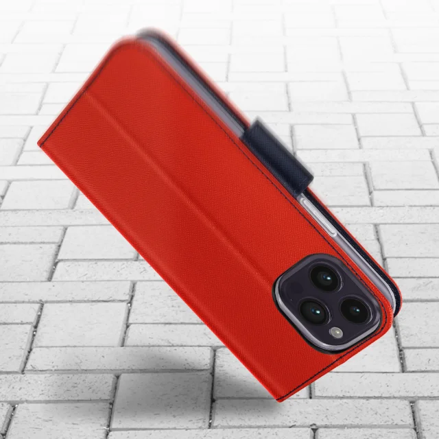 Ovitek denarnica za iPhone 14 Pro z magnetnim zavihkom in držalom za kartico - rdec in moder