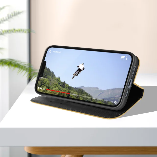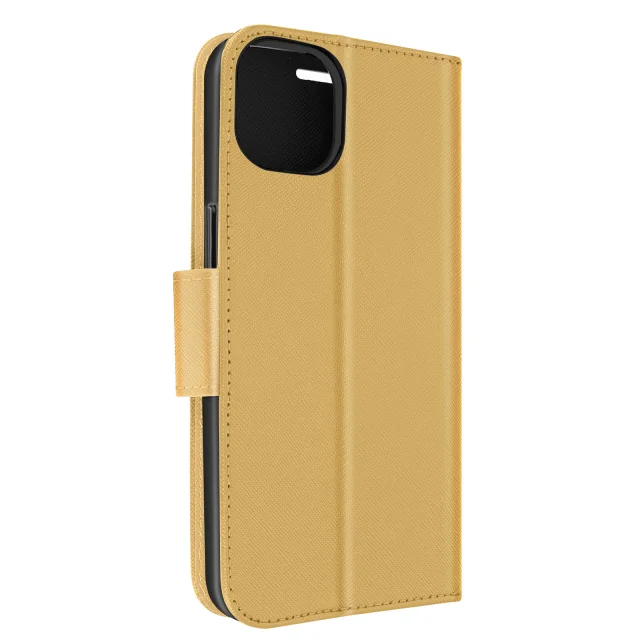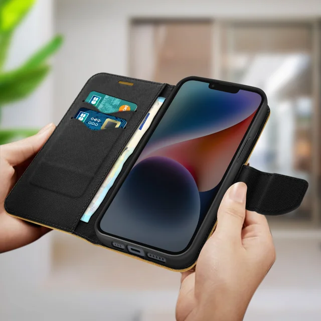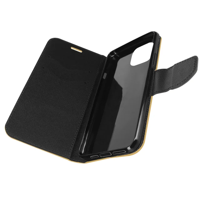 Ovitek denarnica za iPhone 14 z magnetnim jezickom in držalom za kartico - zlata in crna