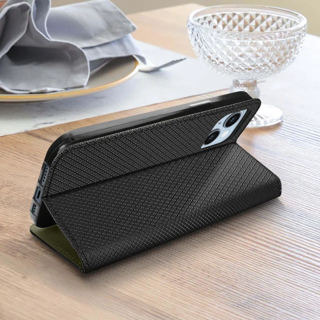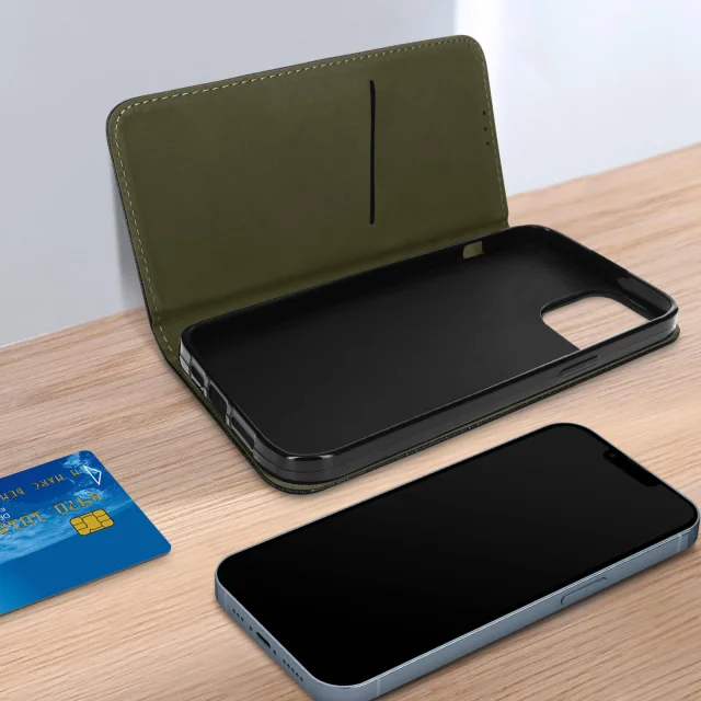 Ovitek denarnica za iPhone 14 z magnetnim zavihkom in držalom za kartico, crna