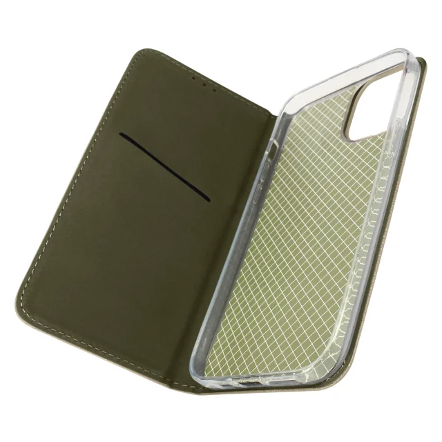 Ovitek denarnica za iPhone 14 z magnetnim zavihkom in držalom za kartico v zlati barvi