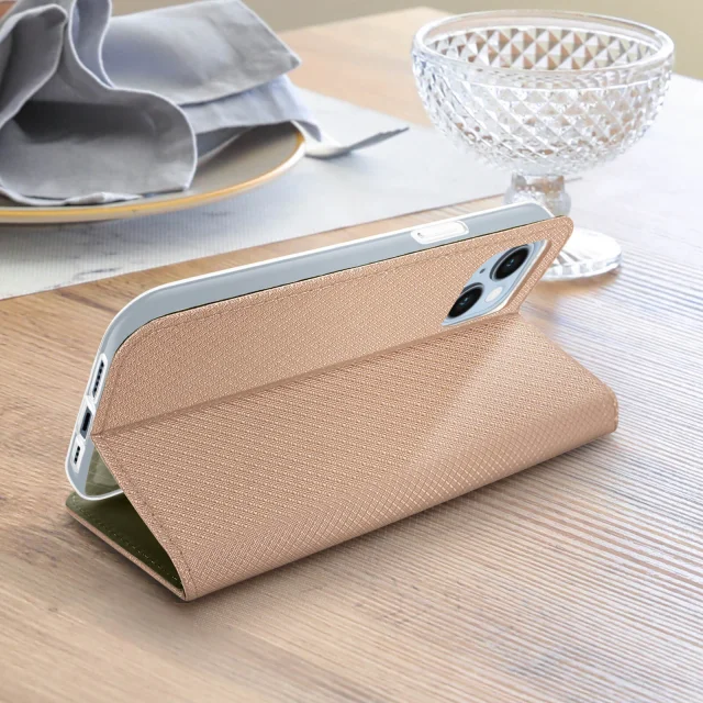 Ovitek denarnica za iPhone 14 z magnetno zaponko in držalom za kartico, roza zlato