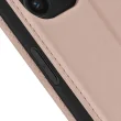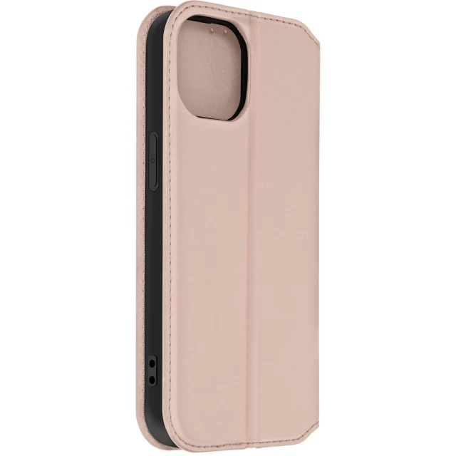 Roza folija za iPhone 15 Pro Max. Ima predelke za kartice v podlogi magnetne lopute in odporno in prožno silikonsko gelsko lupino. Služi tudi kot vodoravna podpora za ogled vaših videoposnetkov.