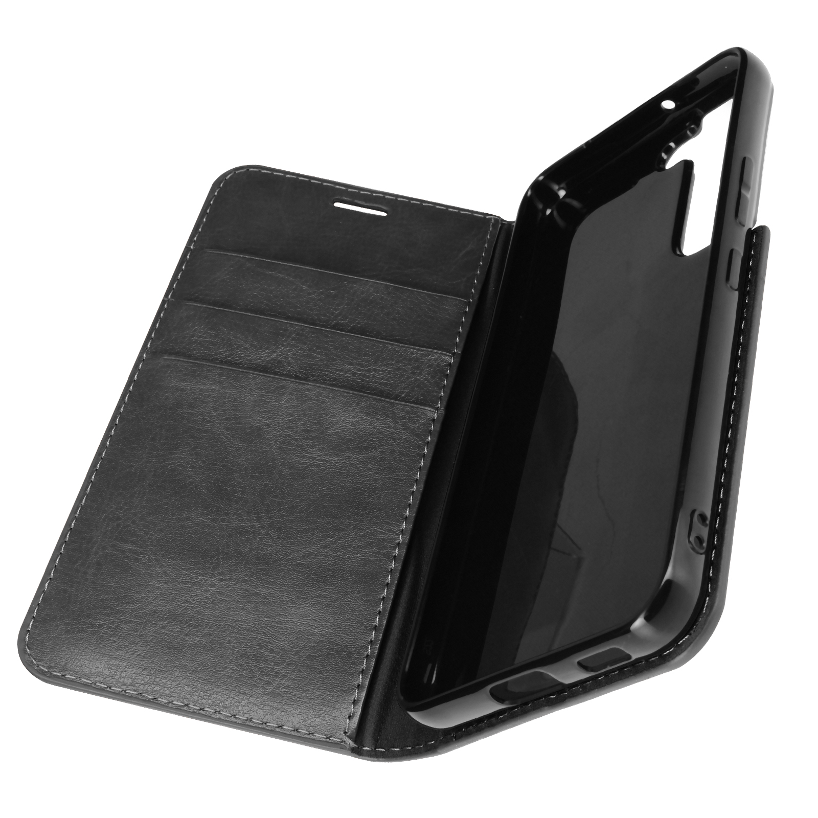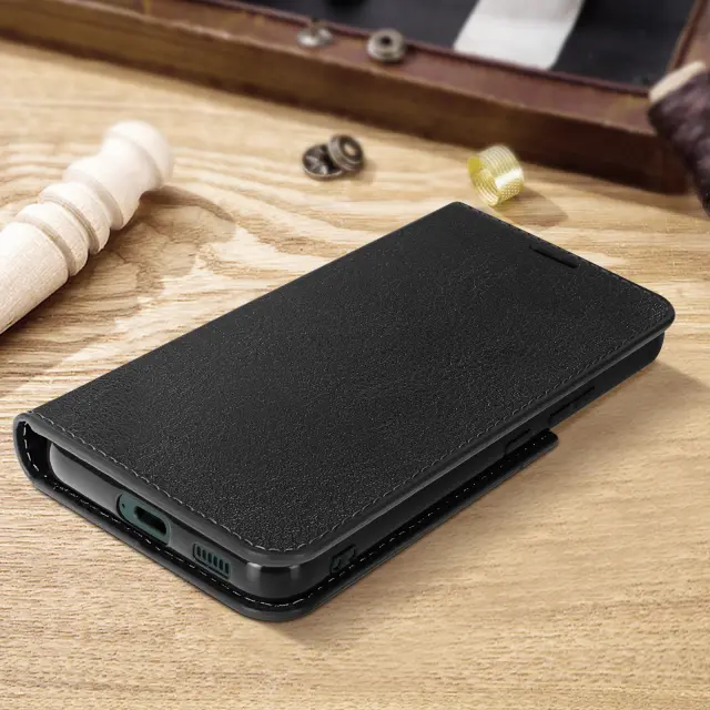 Ta ovitek za Galaxy S22 iz crnega pravega usnja poudari dizajn mobilnega telefona, hkrati pa zagotavlja njegovo zašcito. Izjemno prakticen pokrov zahvaljujoc modularnemu ventilu, ki deluje kot podpora za video. Ima zavihek denarnice za kartice in bankovce.