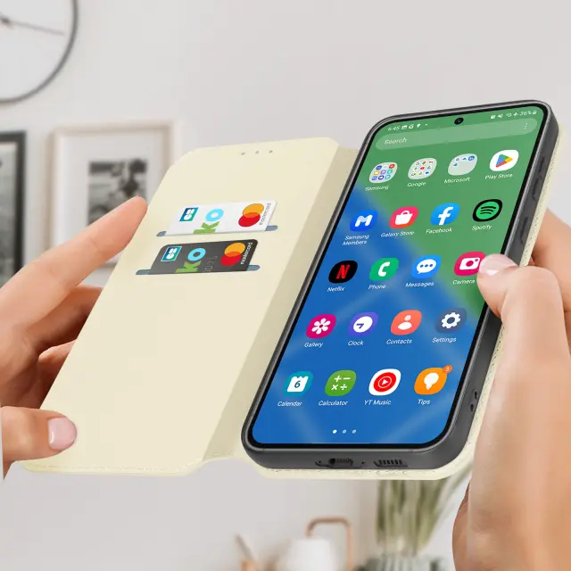 Ovitek denarnica za Samsung Galaxy S23 FE, podpora za video - klasicna izdaja zlata
