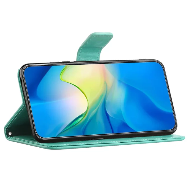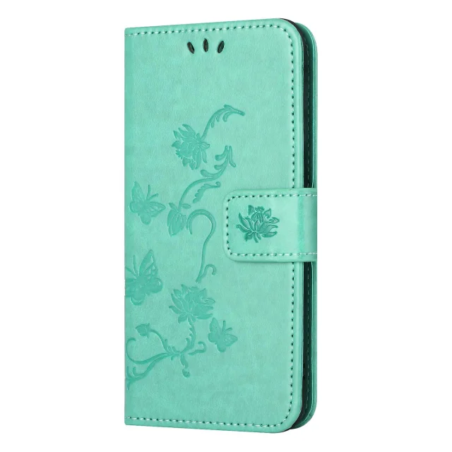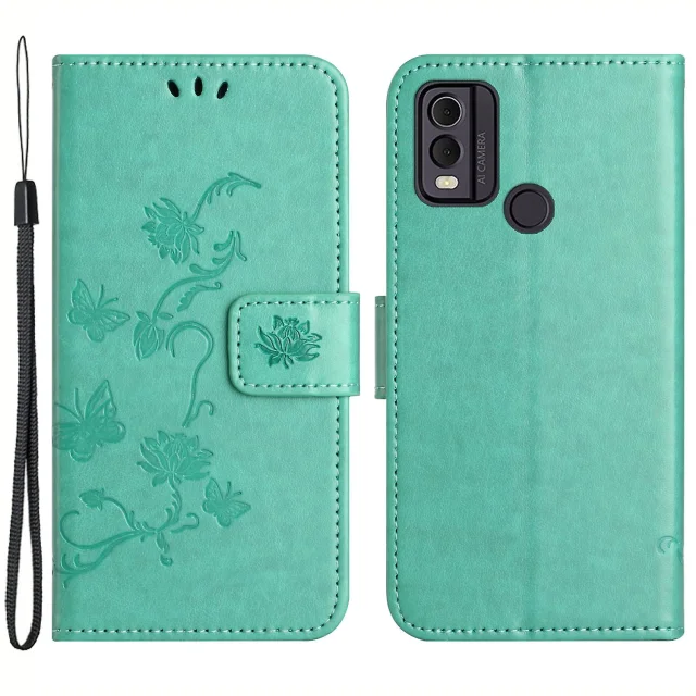 Ovitek denarnica za telefon Nokia C32/C22, odporen na prah, PU usnjeni ovitek za stojalo z vtisnjenim metuljčkom in cvetjem