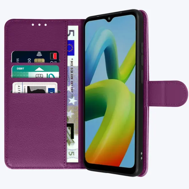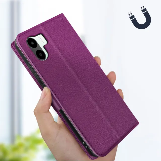 Ovitek denarnica za Xiaomi Redmi A1 in A2 z magnetnim zavihkom in video držalom - vijolicen