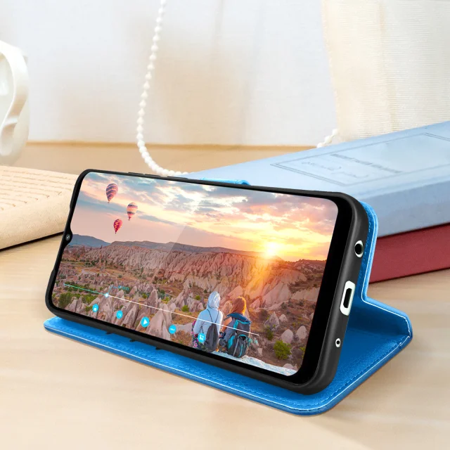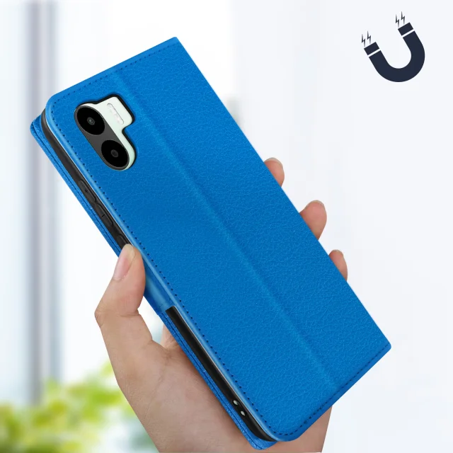 Ovitek denarnica za Xiaomi Redmi A1 in A2 z magnetnim jezickom in video držalom - moder