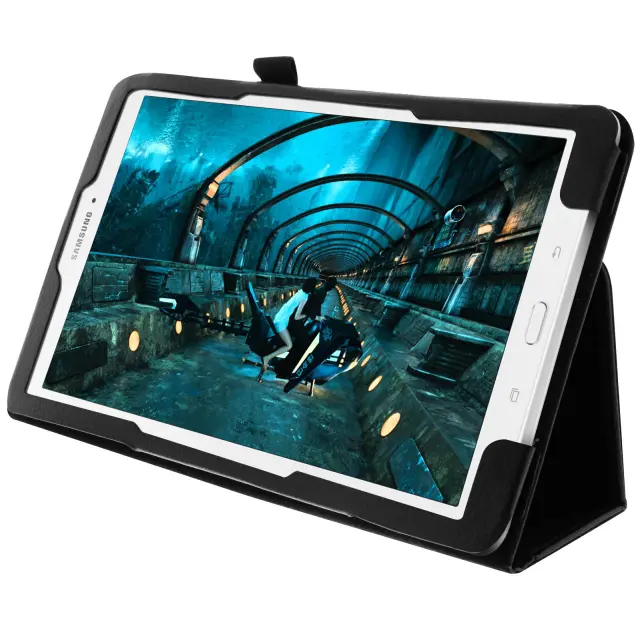 Zašcitna torbica, funkcija podpore za Samsung Galaxy Tab E 9.6''. Ta ovitek iz umetnega usnja elegantno polepša vašo tablico. Kadar koli lahko preklopi na 2 nacina podpore in pusti vse funkcije vašega tablicnega racunalnika dostopne.