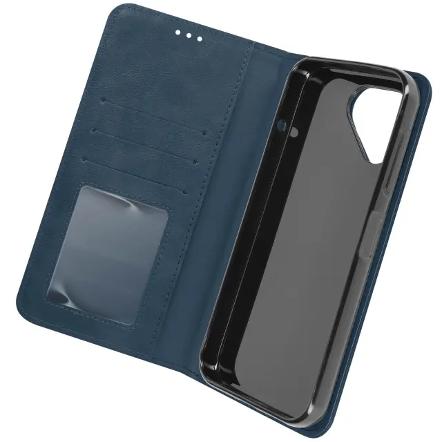Zašcita Zbirka Fairphone 5 Geo, ki združuje zašcito in dizajn. Ovitek iz umetnega usnja Fairphone 5 Midnight Blue z notranjim silikonskim ohišjem. Etui z vzorcem šahovnice z magnetno loputo. Zašcita s prevleko za denarnico in funkcijo video stojala.