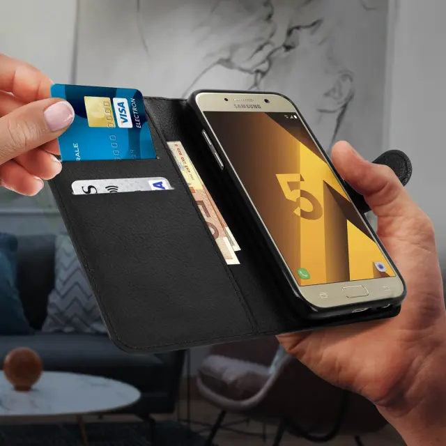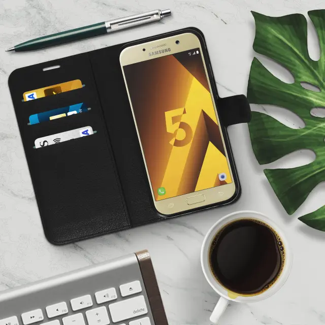 Ovitek Flip wallet, tanek ovitek za Samsung Galaxy A5 2017, silikonsko ohišje – Črna