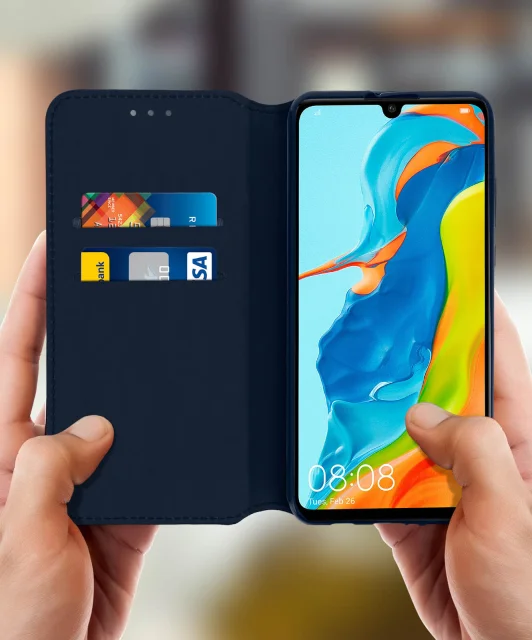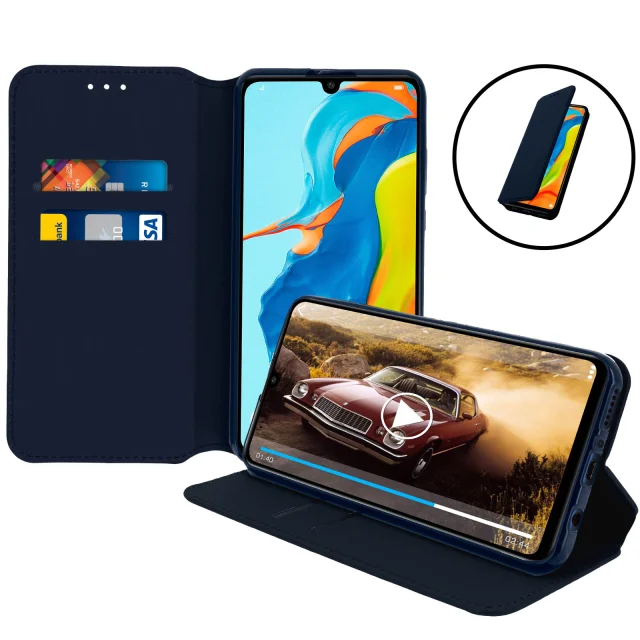 Ovitek folija Držalo za kartice in stojalo za video - polnocno modra str. Huawei P30 Lite