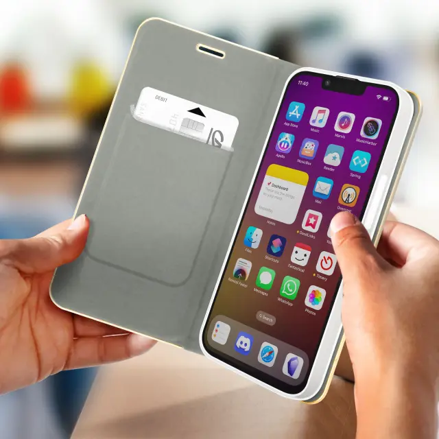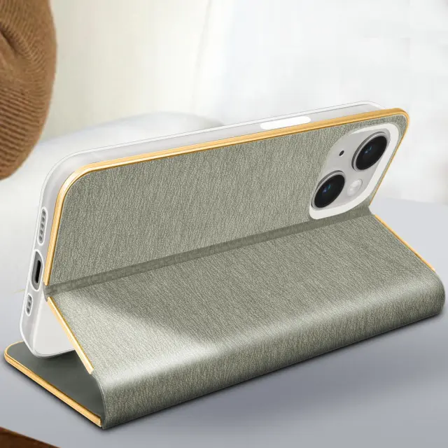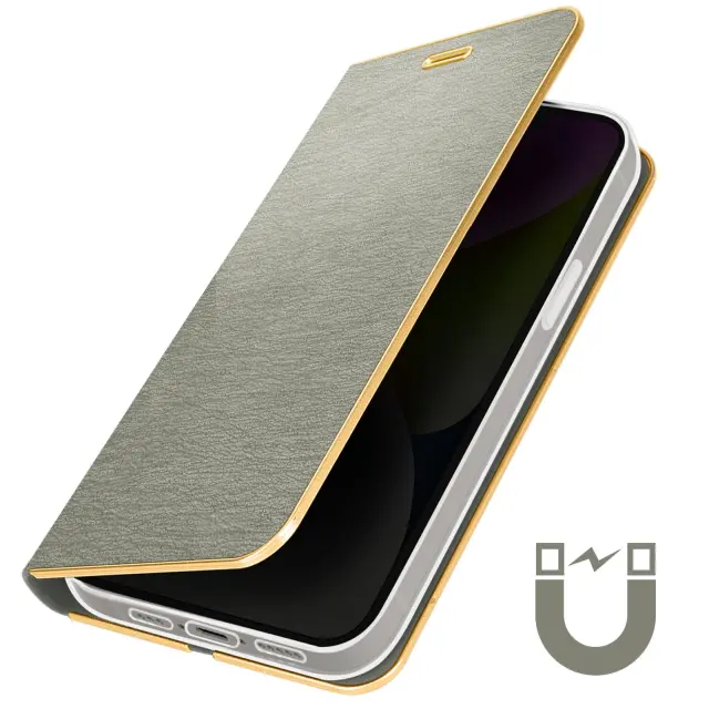Ovitek Folio za iPhone 14, Luna Book Gold - siv