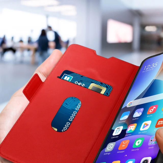 Ovitek Folio za Xiaomi Redmi Note 12 5G in 4G, izjemno tanka zašcita z dvojnim magnetnim zavihkom - rdec