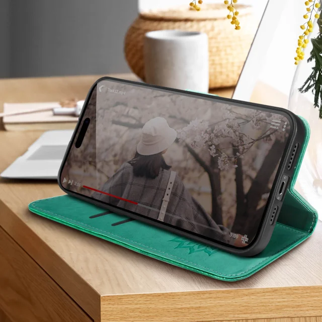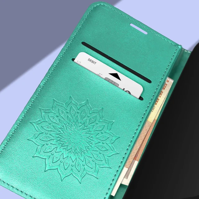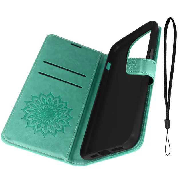 Ovitek Green Flower Mandala, denarnica za iPhone 14 Pro Max