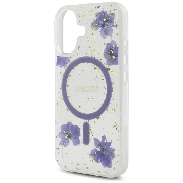 OVITEK GUESS CASE MAGNETNI ZA MAGSAFE IPHONE 16 RESIN FLOWERS BLEŠČICE