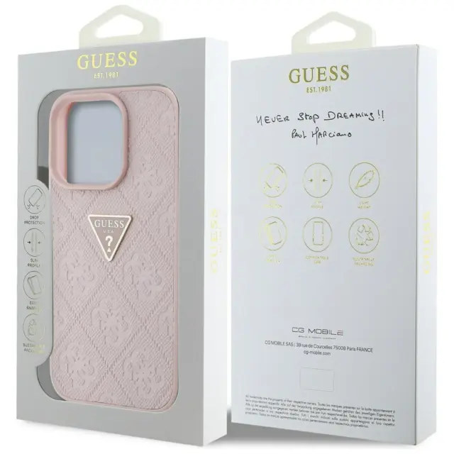 OVITEK GUESS HOT STAMP 4G ZA IPHONE 16 PRO MAX S KOVINSKIM LOGO TRIKOTNIM VZORCEM