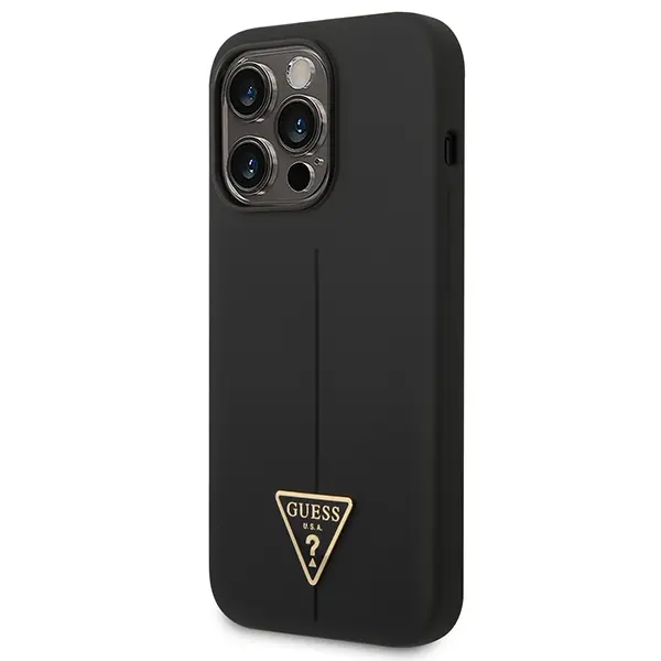 OVITEK GUESS ZA IPHONE 14 PRO MAX 6.7 SILIKONSKI TRDI OVITEK Z DIZAJNOM TRIKOTNIKA