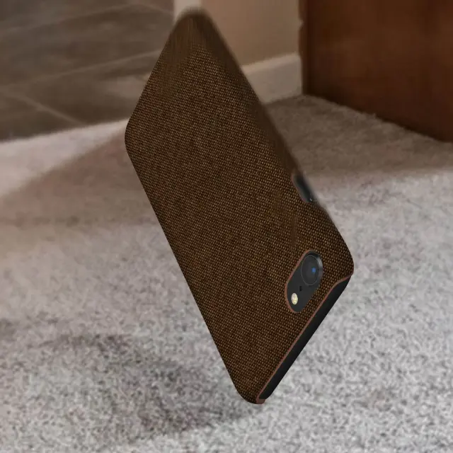 Ovitek iz blaga za iPhone SE 2022, 2020 in iPhone 8, 7, trda zašcita proti udarcem - rjava