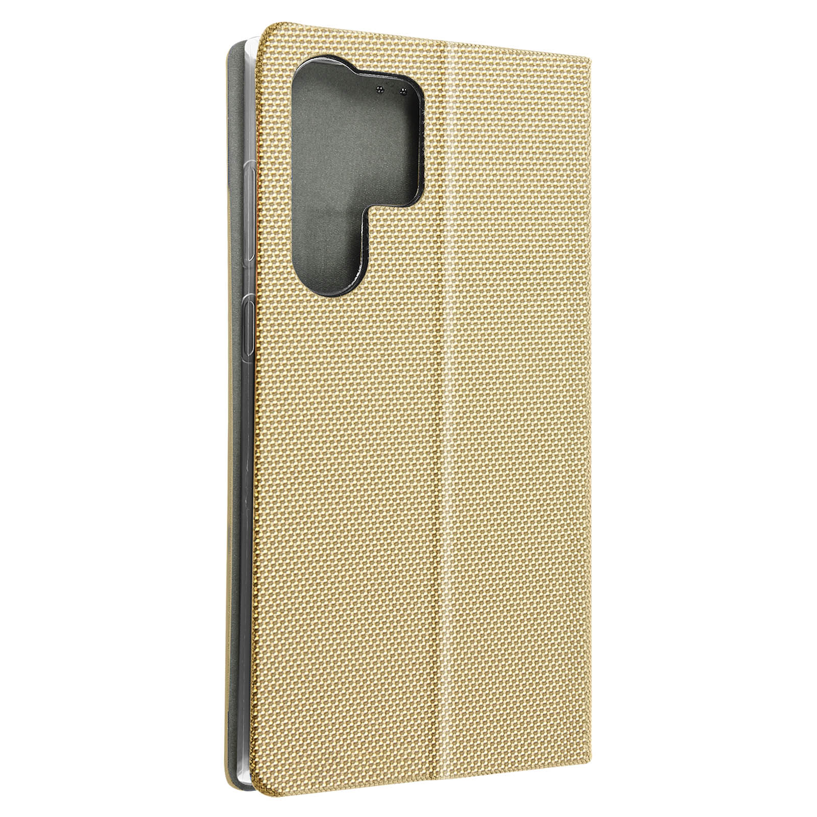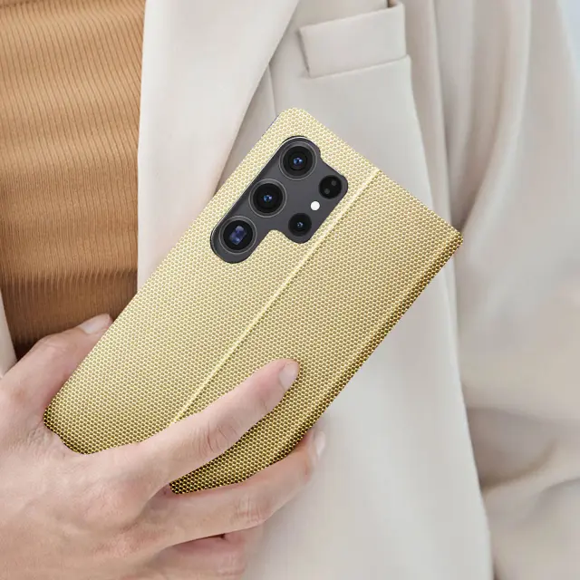 Ovitek iz blaga za Samsung S23 Ultra, držalo za kartice na preklop, serija Sensitive - zlata