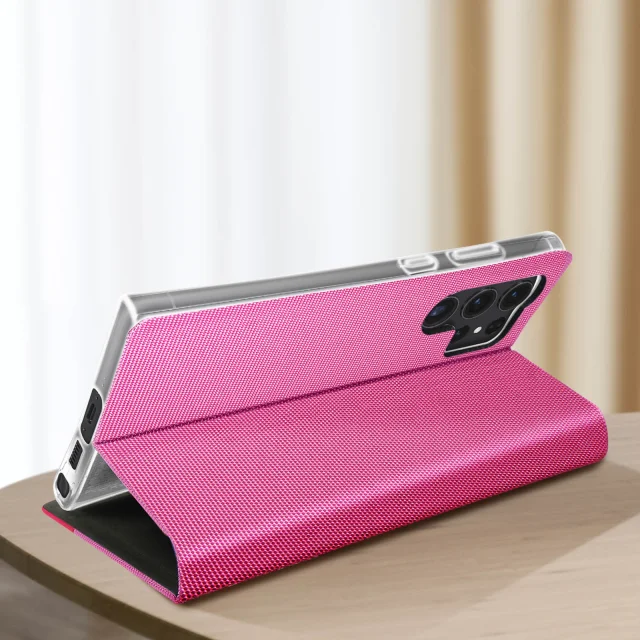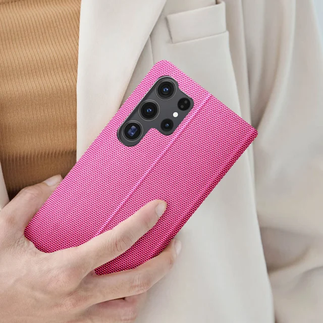 Ovitek iz blaga za Samsung S23 Ultra, držalo za kartice na preklop, serija Sensitive - roza