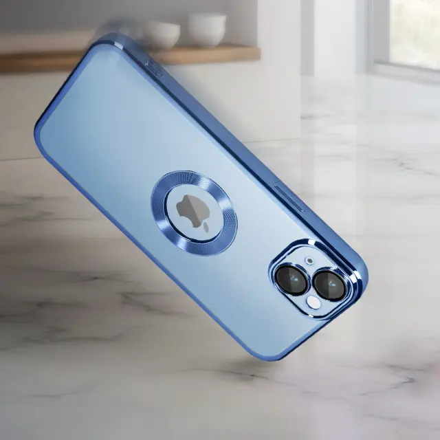 Modra zaščita s kromiranim učinkom, zasnovana za iPhone 14. Izdelana iz odpornega silikonskega gela za učinkovito zaščito vašega telefona pred udarci in praskami. Edinstvena zasnova za vaš pametni telefon, medtem ko logotip Apple na vašem telefonu ostane viden. Notranja tekstura z miko pikami proti porumenelosti za dolgotrajno uporabo.