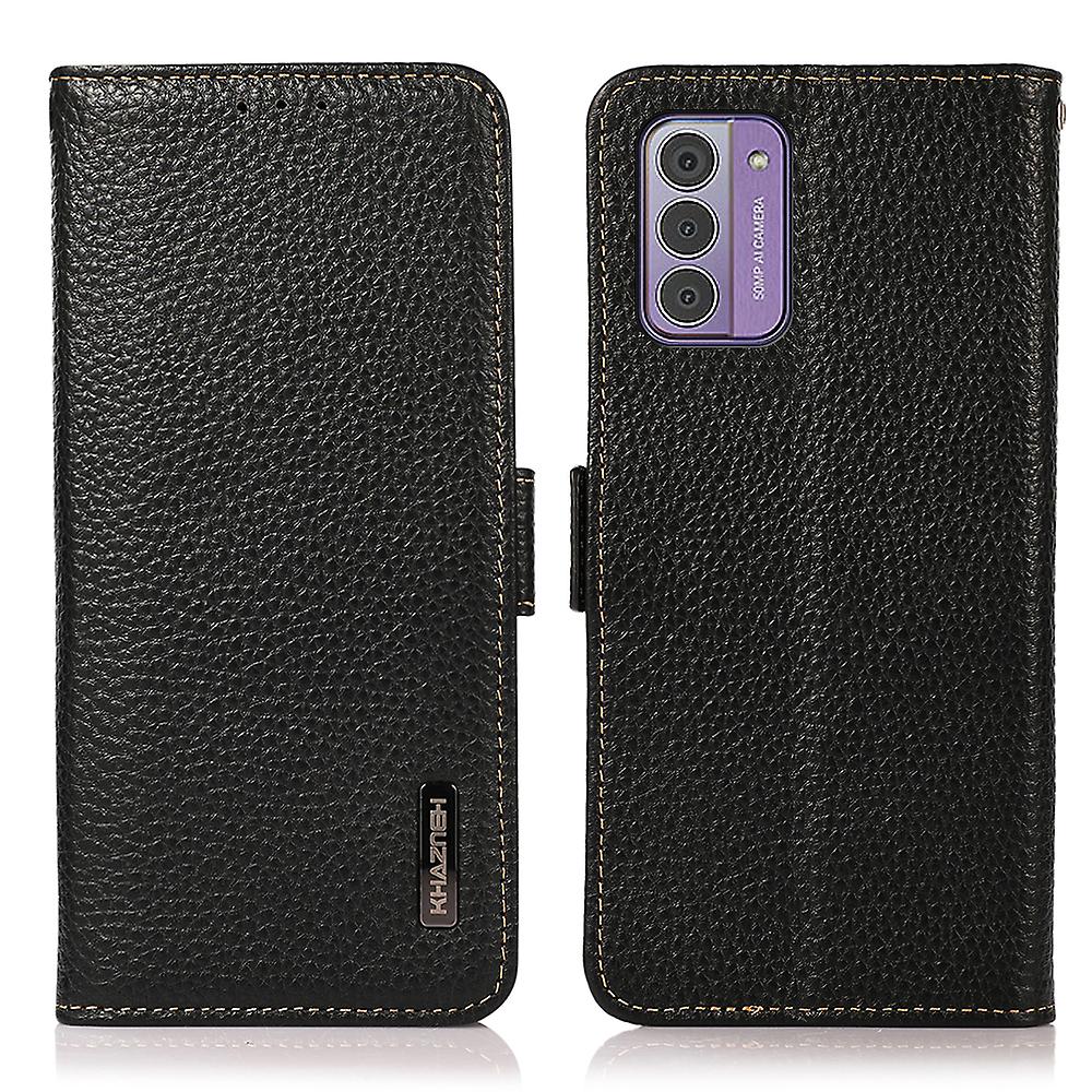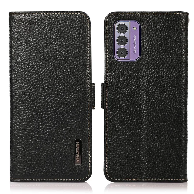 Ovitek iz pravega kravjega usnja za telefon Nokia G42, denarnica, stojalo za blokiranje RFID, tekstura ličija