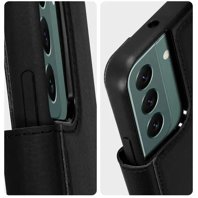 Ovitek iz pravega usnja, ki ga je posebej oblikoval Otter Box za Samsung Galaxy S22 Plus. Vojaški standard robustnosti MIL-STD-810G za maksimalno zaščito. Togo notranje ohišje: sprejme obliko telefona za večjo varnost. Mate zaključek, ki odraža trezen in urejen dizajn s prijetnim oprijemom.