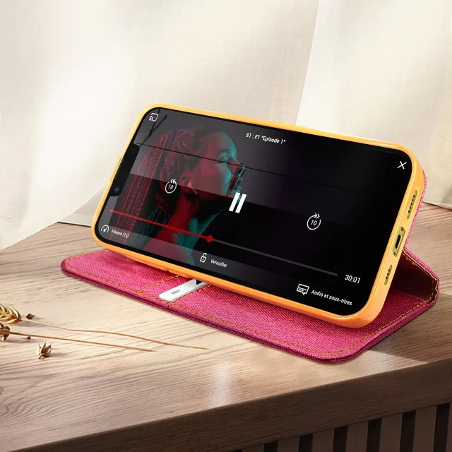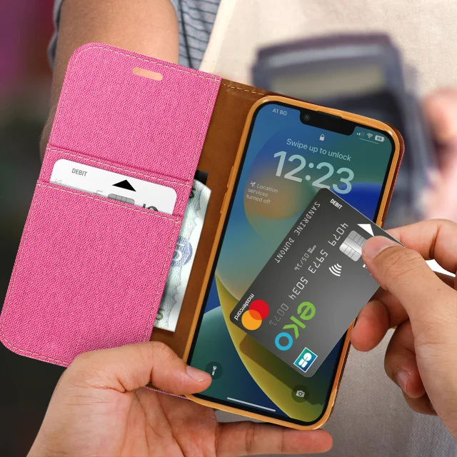 Ovitek iz tkanine za kartice za iPhone 14, serija Canvas Book - roza