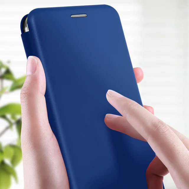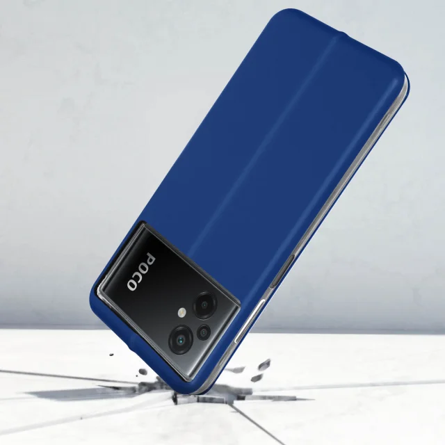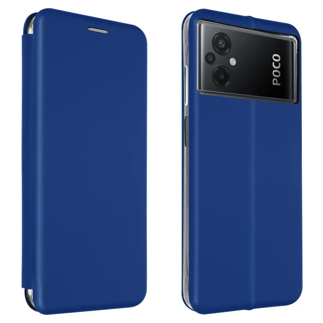 Ovitek iz umetnega usnja Xiaomi Poco M5 Glossy Effect, držalo za kartice in video držalo - modra