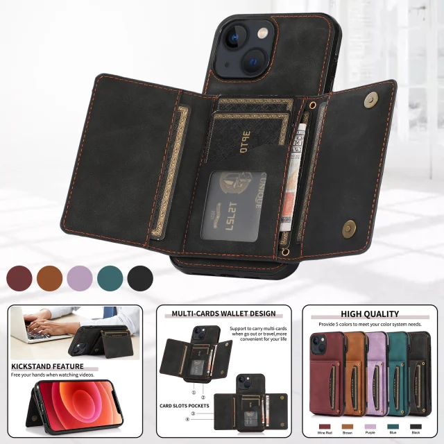 Ovitek iz umetnega usnja z držalom za kartice za iPhone serije 15 iPhone 15 Pro