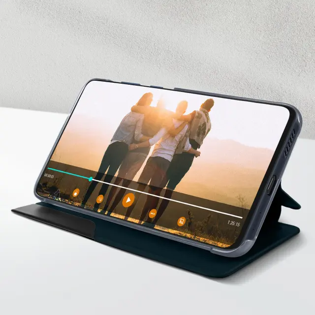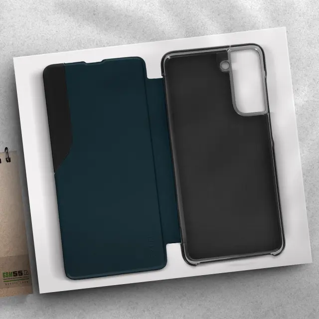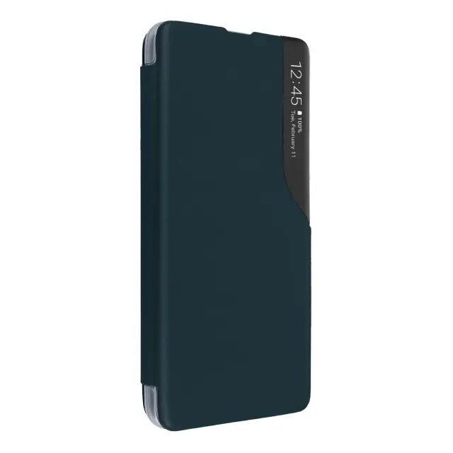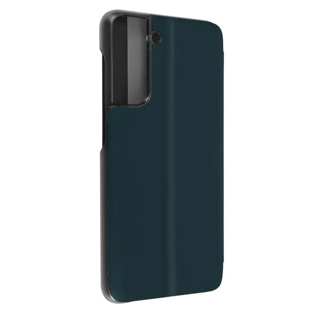 Ovitek Clear View za Samsung Galaxy S21 FE kaki zelen. Ta etui ima prozorno okence, ki prikazuje cas brez odpiranja lopute. Je sestavni del zašcite pred udarci in praskami. Deluje tudi kot video podpora