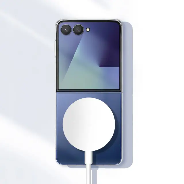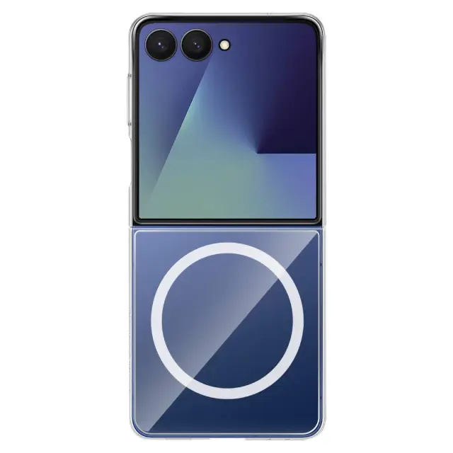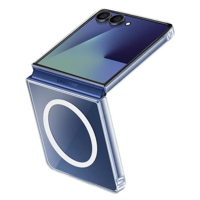 Ovitek MagSafe za Galaxy Z Flip 7 proti udarcem z magnetnim stojalom, Prozorno