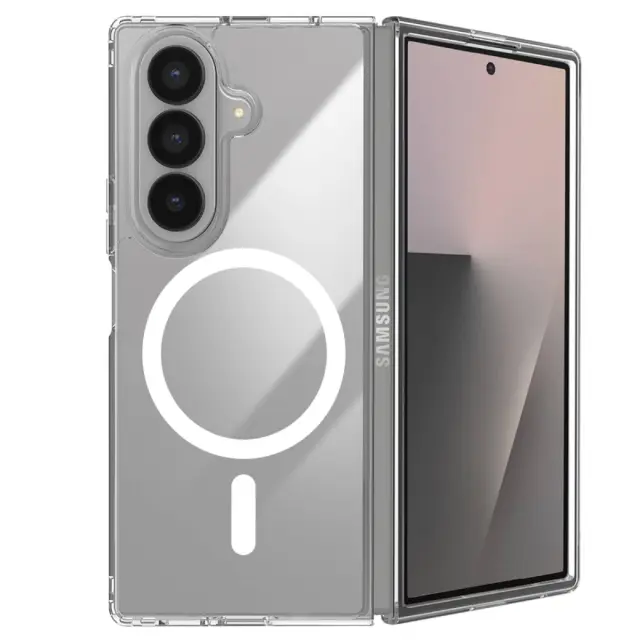 Ovitek MagSafe za Galaxy Z Fold 7 proti udarcem z magnetnim stojalom, Prozorno