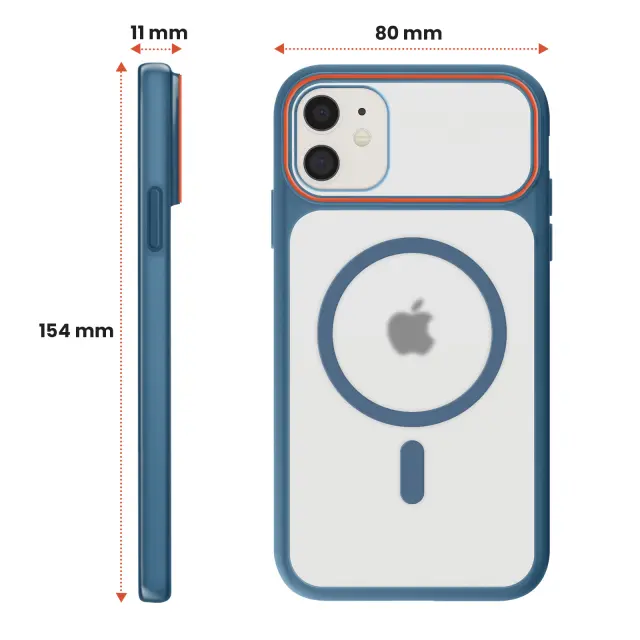 Ohišje MagSafe za iPhone 11 zagotavlja stabilno pritrditev z dodatki MagSafe. Dimljena prosojna polikarbonatna trda hrbtna stran, ki ščiti zadnjo stran in hkrati prikazuje logotip Apple. Poltrdni črni silikonski okvir za boljši oprijem in učinkovito blaženje udarcev. Okrepljen otok kamere z oblikovanim prekrivanjem in 2 mm dvignjenim robom zaslona za zaščito pred praskami.