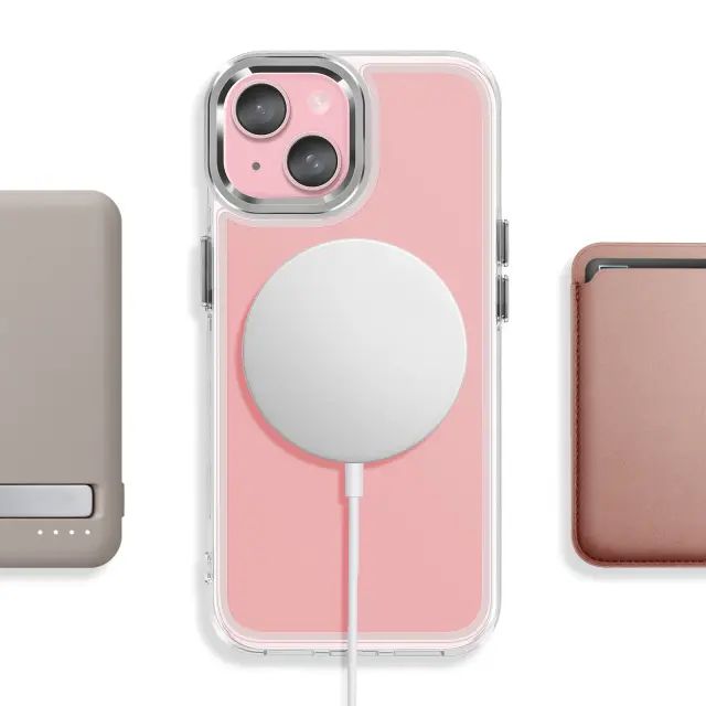 Ohišje MagSafe za iPhone 15 združuje togost in prožnost, da učinkovito absorbira udarce. Magnetni obroč MagSafe za združljivost s hitrim brezžičnim polnjenjem. Mat roza, trda hrbtna stran, ki preprečuje odtisi prstnih odtisov in ohranja najboljši videz dizajna. Ojačani vogali z diskretnimi zračnimi blazinami za optimalno zaščito pred udarci brez dodatne teže.
