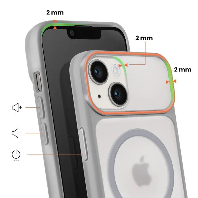 Ohišje MagSafe za iPhone 15 Plus in iPhone 14 Plus zagotavlja stabilno pritrditev dodatne opreme MagSafe. Dimljena prosojna polikarbonatna trda hrbtna stran, ki ščiti zadnjo stran in hkrati prikazuje logotip Apple. Poltrdni črni silikonski okvir za boljši oprijem in učinkovito blaženje udarcev. Okrepljen otok kamere z oblikovanim prekrivanjem in 2 mm dvignjenim robom zaslona za zaščito pred praskami.